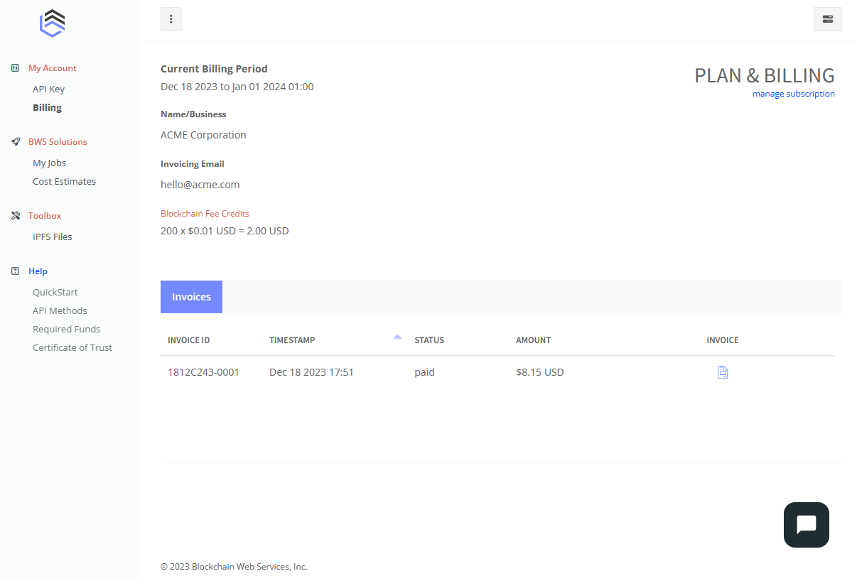 We use the Blockchain Credit Fee as the minimum billable unit, 0.01 USD. If, for example, you spend 2 USD creating NFTs, we will add 200 blockchain credit fee units to your next bill.
